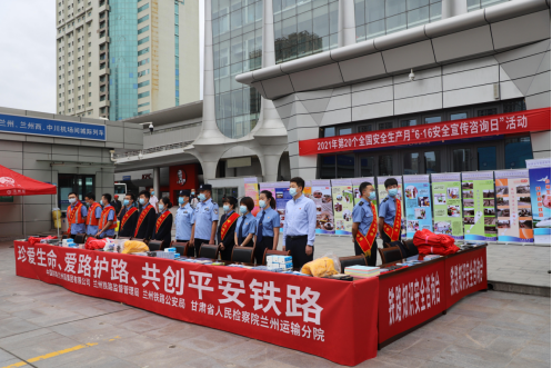 6月16日,兰铁检察分院、兰州铁路运输检察院会同中铁兰州局集团有限公司、兰州铁路监督管理局、兰州铁路公安局等单位在兰州火车站开展“6·16安全宣传咨询日”暨铁路领域公共安全检察公益诉讼宣传主题活动。